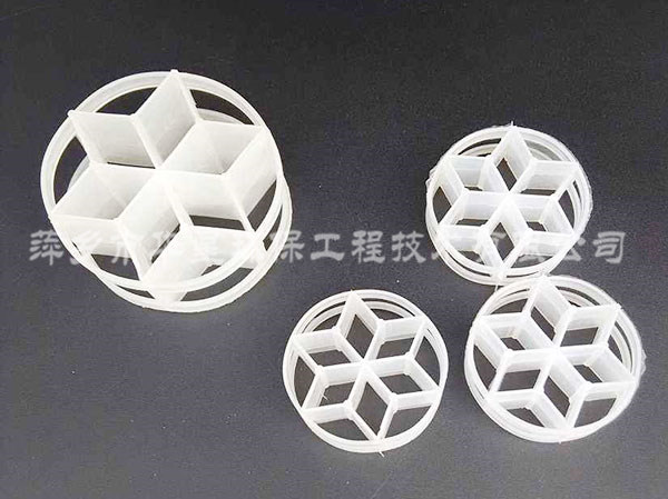 塑料散堆填料主要包括:多面空心球、花環(huán)、海爾環(huán)、階梯環(huán)、共軛環(huán)、鮑爾環(huán)、矩鞍環(huán)、異鞍環(huán)、扁環(huán)、拉西環(huán)、雪花環(huán)、六棱形環(huán)、旋轉(zhuǎn)環(huán)、五角環(huán)、浮球、液面覆蓋球、菱形覆蓋球、錐形環(huán)、網(wǎng)環(huán)、十字球形環(huán)等。