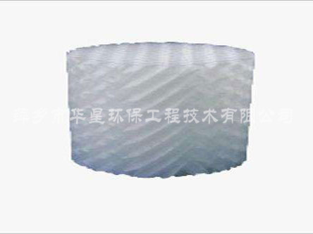塑料規(guī)整填料具有重量輕,通量大、壓降低、比表面積高、易更換等優(yōu)點。絲網(wǎng)波紋填料由聚丙烯與聚丙烯腈線混合編織網(wǎng)組成。波紋填料可采用聚丙烯PVDF板,為提高傳質(zhì)效率,板上可開孔。塑料規(guī)整填料有:板波紋填料、孔板波紋填料、絲網(wǎng)波紋填料和斜波紋填料等。