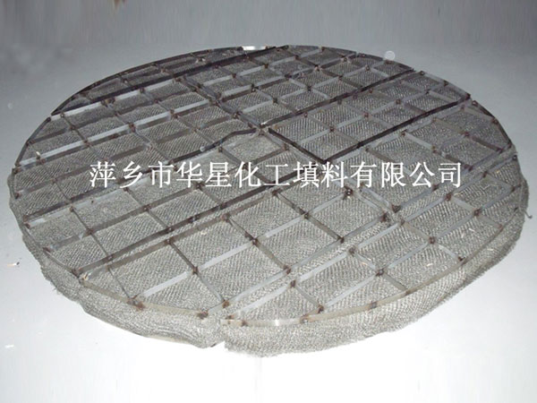絲網(wǎng)除沫器主要是由絲網(wǎng)、絲網(wǎng)格柵組成絲網(wǎng)塊和固定絲網(wǎng)塊的支承裝置構(gòu)成,絲網(wǎng)為各種材質(zhì)的氣液過(guò)濾網(wǎng),氣液過(guò)濾網(wǎng)是由金屬絲或非金屬絲組成。氣液過(guò)濾網(wǎng)的非金屬絲由多股非金屬纖維捻制而成,亦可為單股非金屬絲。該絲網(wǎng)除沫器不但能濾除懸浮于氣流中的較大液沫,而且能濾除較小和微小液沫,廣泛應(yīng)用于化工、石油、塔器制造、壓力容器等行業(yè)中的氣液分離裝置中。